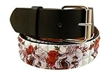 Elite White Studded Adult Belt with Skulls and Roses Specification